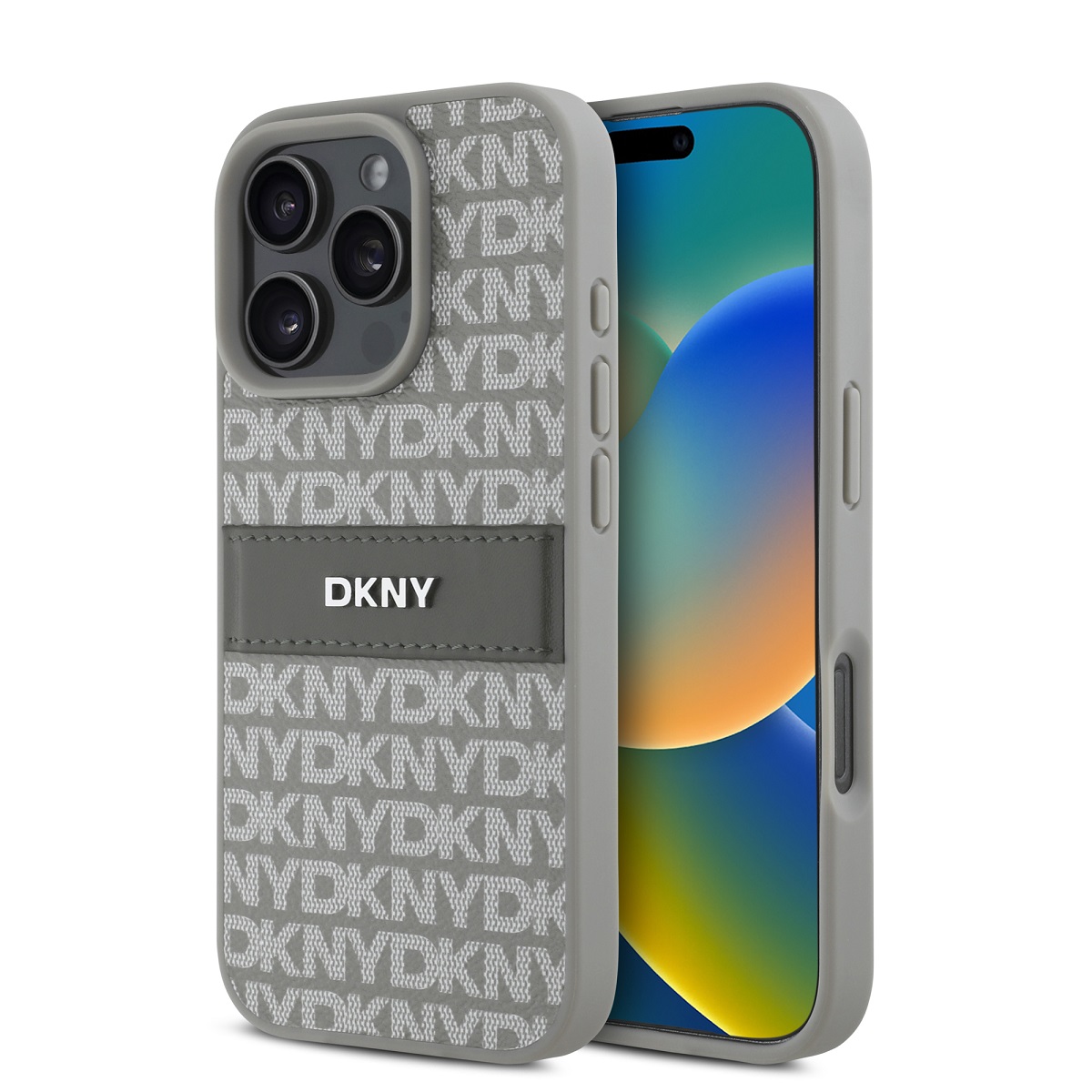 Калъф от DKNY PU Leather Repeat Pattern Tonal Stripe Case за iPhone 16 Pro Beige