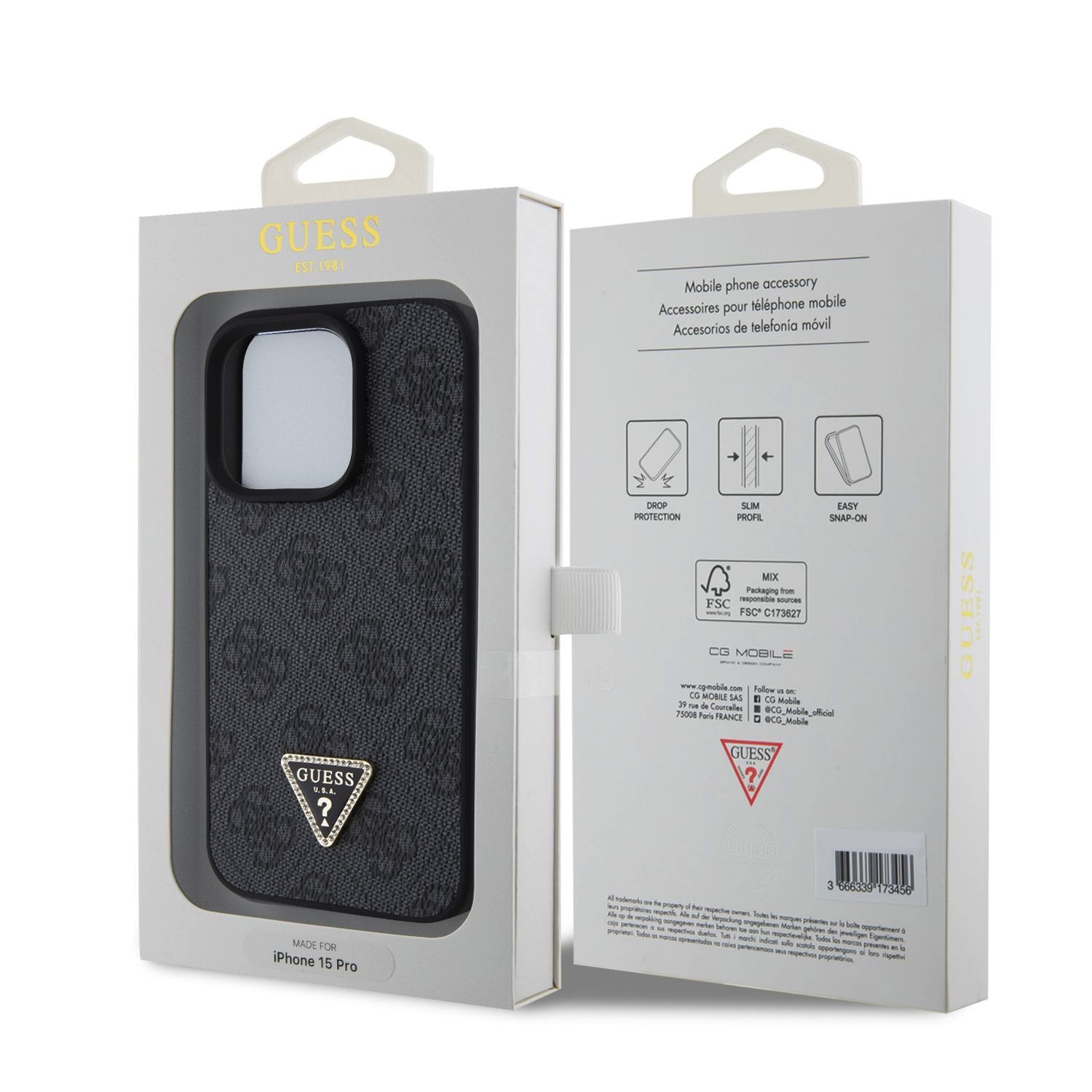 Калъф от Guess PU 4G Strass Triangle Metal Logo Case за iPhone 15 Pro Black