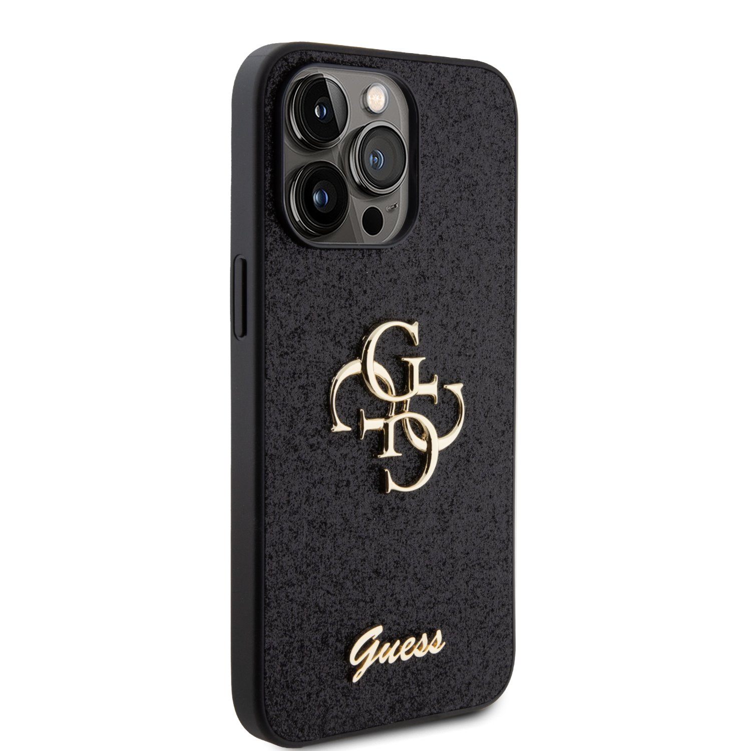 Калъф от Guess PU Fixed Glitter 4G Metal Logo Case за iPhone 15 Pro Black