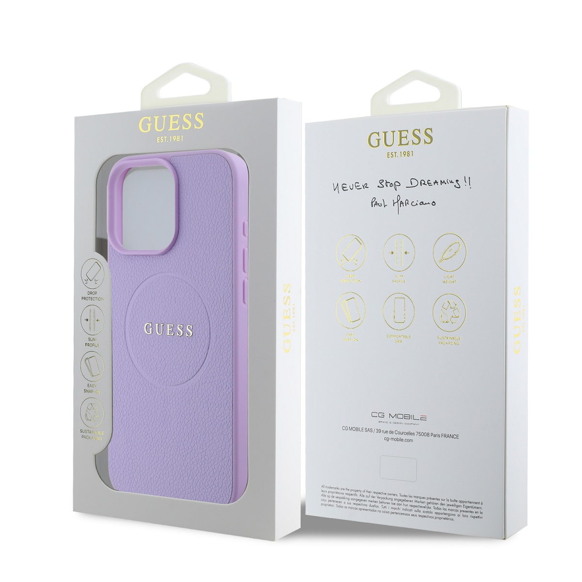 Калъф от Guess PU Grained Classic Logo MagSafe Case за iPhone 16 Pro Purple