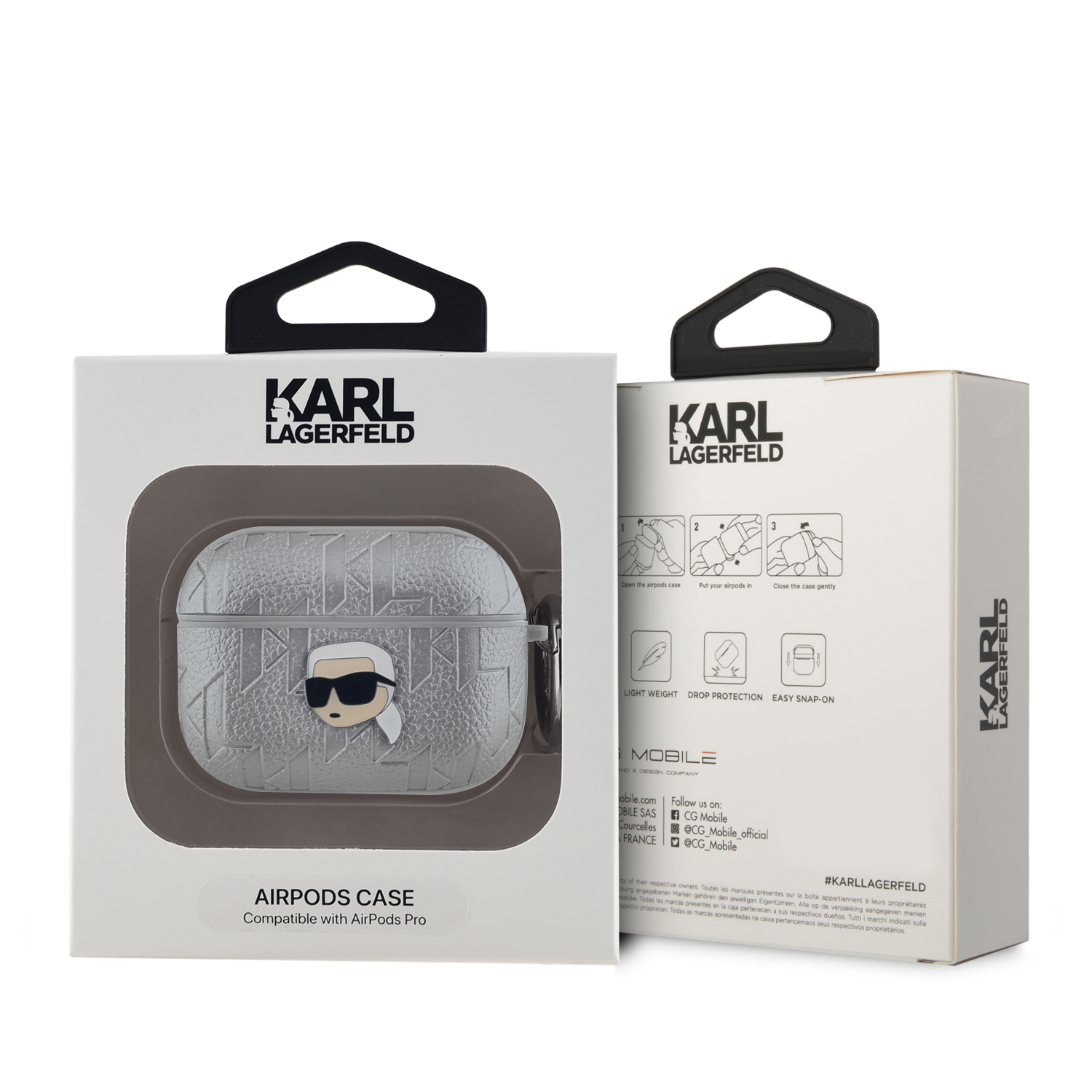 Калъф от Karl Lagerfeld PU Embossed Karl Head Case for AirPods Pro Silver