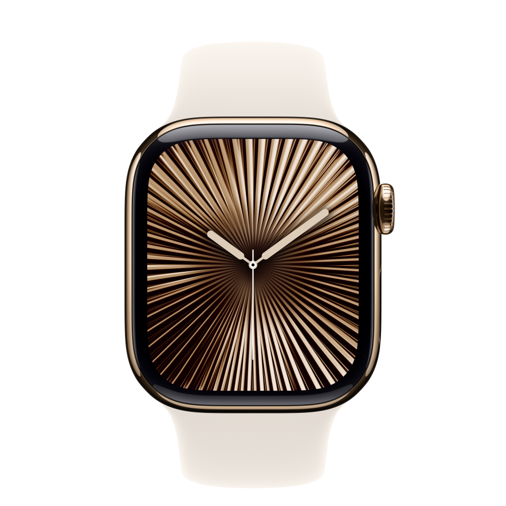 Apple Watch S10 Cellular 42mm Gold Titanium Case with Starlight Sport Band – S/M