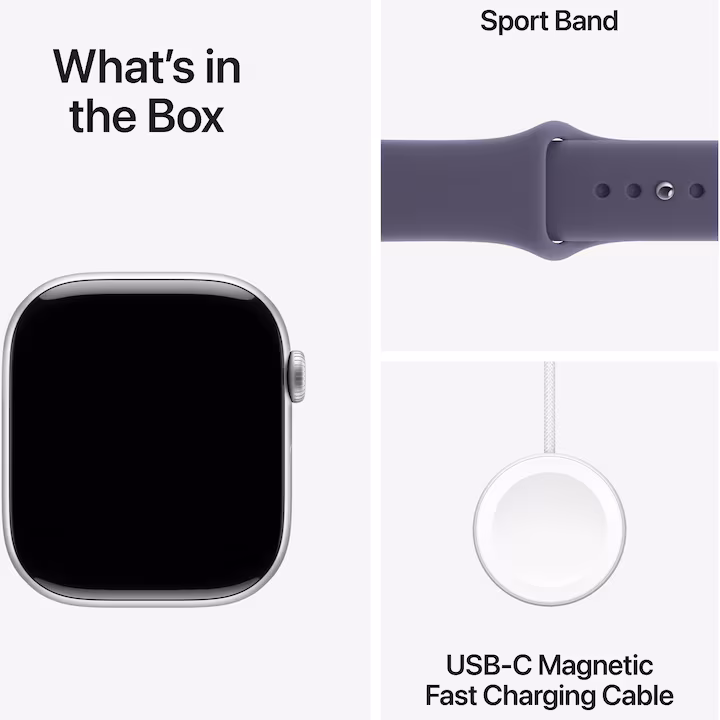 Apple Watch Series 11 GPS 46mm Silver Aluminium Case with Purple Fog Sport Band – M/L
