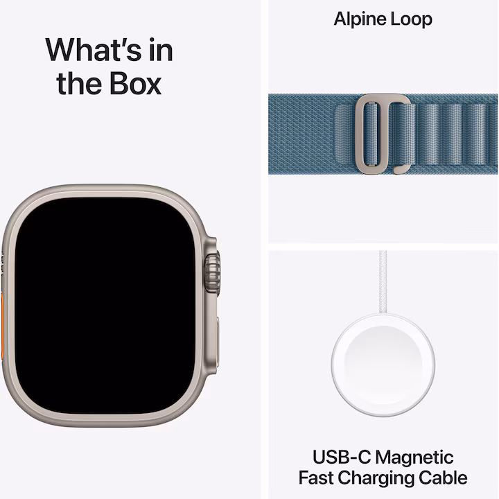 Apple Watch Ultra 3 GPS + Cellular 49mm Natural Titanium Case with Light Blue Alpine Loop – Small